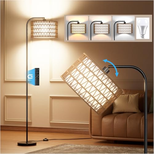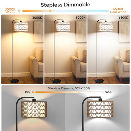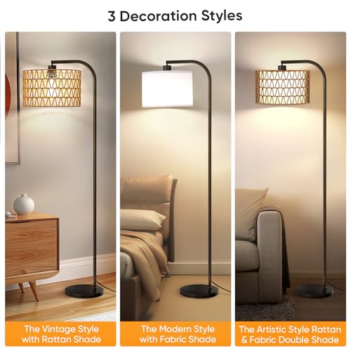A Beautiful Boho Decor: FULSUNT's handmade rattan floor lamp adds natural elegance to any space. Each rattan shade is crafted by hand, making it one-of-a-kind. With 2 removable lampshades, you can customize the look—choose a modern fabric-only style, a cozy rattan shade, or combine both for an artistic flair. The rattan comes with an iron support bar for a more structured look, or you can remove it for a relaxed, flowing nature effect. Perfect for bringing a boho vibe to living rooms or bedrooms