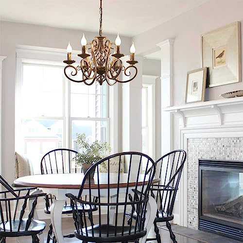 Classic Farmhouse Style Design: Oil rubbed bronze finish, 6 candle-shaped bulb stems with dish cups, placed on 6 simply curved iron arms.(Pls kindly check installtion video in the left page)