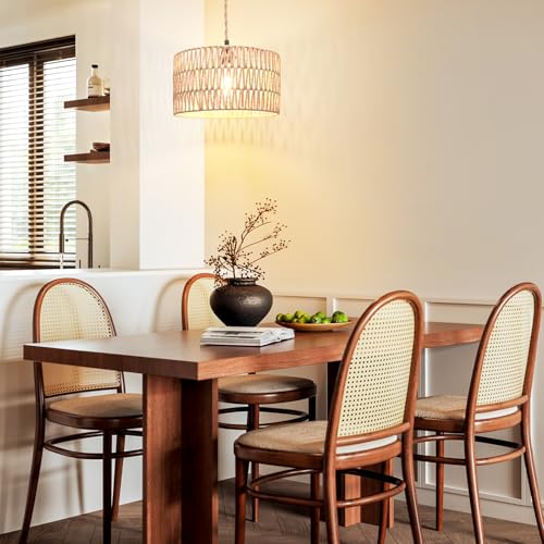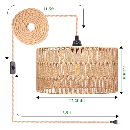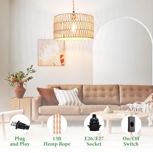 Rattan Pendant Light: The rattan material used for this pendant light wire is a perfect combination with the rattan lampshade. You can adjust the height of the hanging ceiling light with our flexible 14.8 ft plug cord and create the perfect lighting ambiance for any space; the switch is 3.1 feet away from the plug, making it easy to control the lighting without having to bend over.