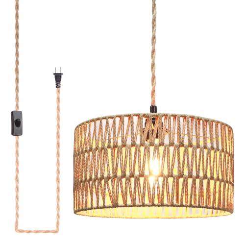 Traditinal Hanging Lamp: The plug in pendant light adds color to your home. This hanging lights with plug in cord is the ideal pendant light for bedrooms, living rooms, bedrooms, kitchens, dining rooms, children's rooms and studies. The rattan shade adds texture and warmth to create a cozy atmosphere in your room; the hanging light diffuses a soft, inviting light and the classic look of the fixture adds a touch of elegance to your home;
