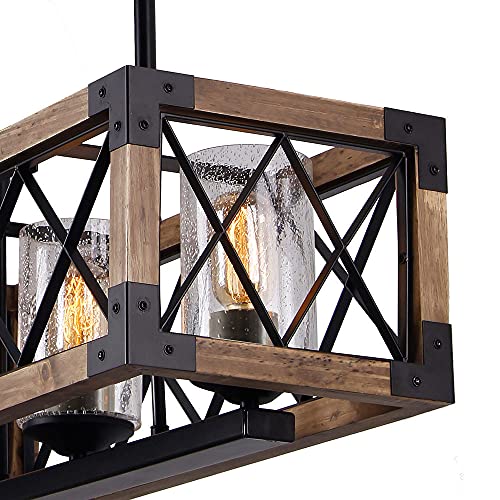 Dining Room Lighting Fixtures: Exquisite metal&wood, high transmittance glass and ancient ways finish creates a truly unique look. Not only a retro chandelier kitchen table lamp but also an ornament for breakfast nook.