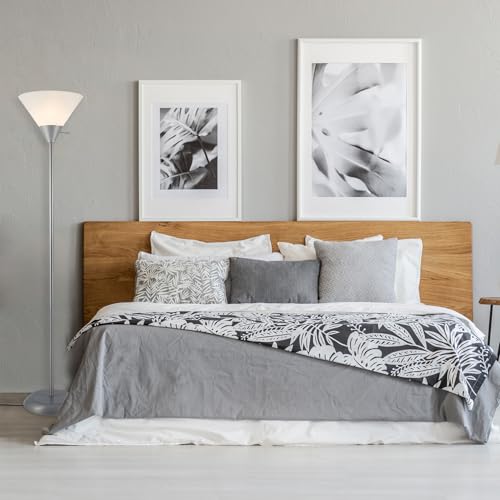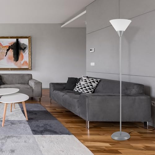 FROSTED SHADE: the white frosted plastic shade blends perfectly with the torchiere style lamp to create a warm light spread