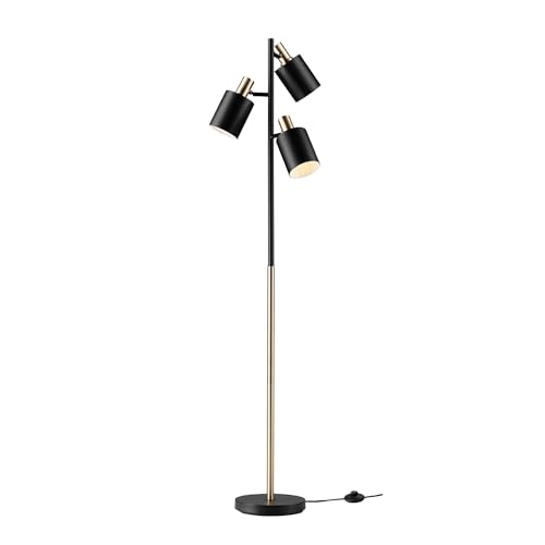 UPSCALE INDUSTRIAL DESIGN matte brass accents complete the industrial design of this 3-light floor lamp to upscale the look to create a quintessential upscale industrial design