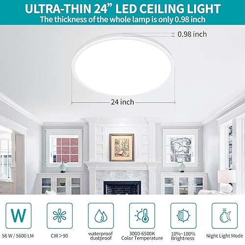 Ultra Slim Design: Glowall 24 inch led ceiling light is only 0.98 inch in thickness, which makes it an ideal choice for spaces with lower ceilings.Our modern ceiling light fixtures can be put in any place of your home and suitable for different decorative styles