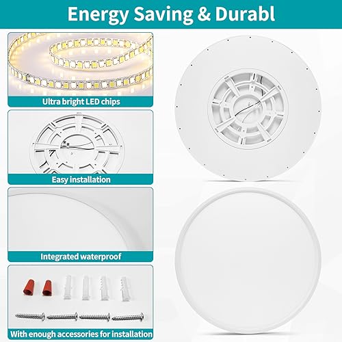 Natural and Eye-caring: Glowall round ceiling light fixtures adopt high quality LED chips provide a large amount of uniform light without flickering or humming noises, protects your eyes from harsh and glaring lights. With a high color rendering index of 90+, which can make the light closer to the real and original color of the object. Provide you with an extraordinary comfortable bright experience