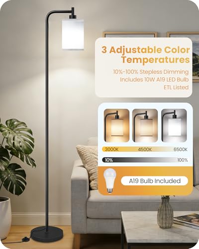 Smooth Dimming: Outfitted with a 10W A19 LED bulb, this corner lamp offers10%-100% stepless dimming for precise lighting control. Choose from warm, natural, or cool white light to match your activity. The memory function recalls your last setting for consistent illumination