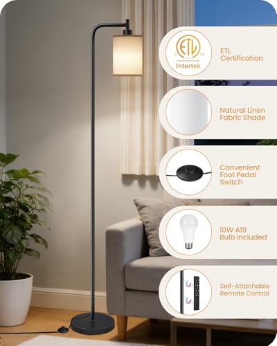 Dual Control with Foot Switch & Remote: Control this standing lamp with ease. Gently tap the foot pedal to cycle through three color temperatures. Adjust brightness from 10% to 100% using the included remote, which conveniently attaches to the lamp pole for quick access when needed