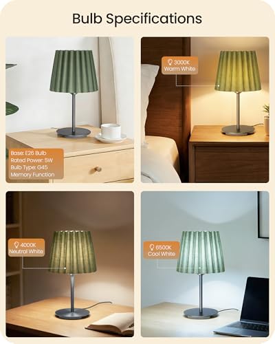 3 Color Temperatures & Memory Function: This table lamp features an E26 bulb that allows for easy switching between 3 color temperatures: 3000K, 4000K, and 6500K for multiple settings. Its built-in memory function retains your last setting after a 10-second power outage, eliminating the hassle of resetting