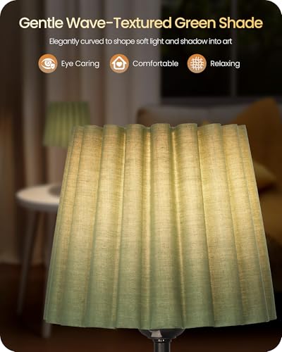Elegant Wavy Green Lampshade: Adorned with a fluted green shade, our desk lamp delivers soft and even light diffusion that brightens your space without glare. Designed to minimize eye strain, it ensures comfort during extended reading or work sessions, while adding a cozy, inviting ambiance to any room