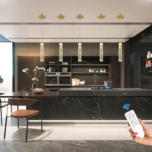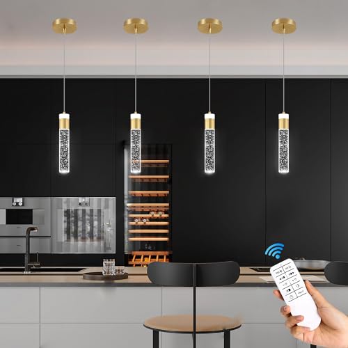 ?UNIQUE CREATVE INSPIRATION:Minimal modern style. This gold kitchen island pendant light, designed with metal aluminum and high light transmittance bubble crystal column, can be used as a fashionable and high-end kitchen island pendant lights, bar or living room dining room light. When you use a bright light bulb for it, will make your house look more wonderful.