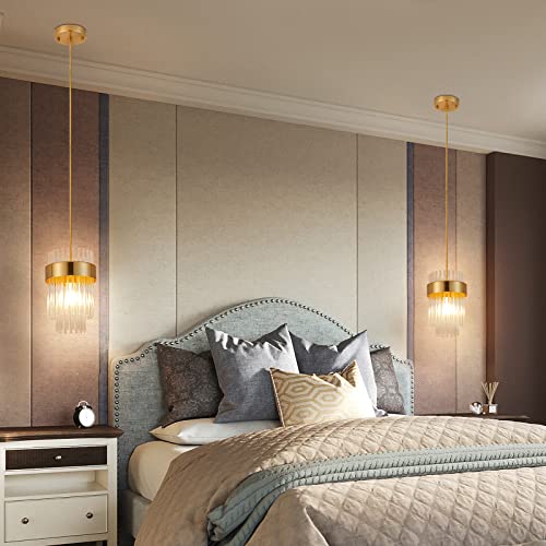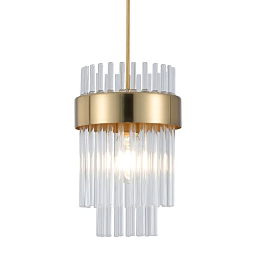 Contemporary Stylish Style: This brass finish pendant light combines modern and mid-century,gold metal and crystal glass rods combination to stylish cake shape,breaks the visual balance of the space and creates a high-level decorative interest.