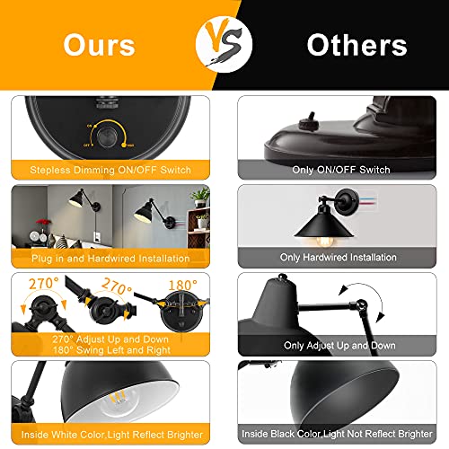 ????????????????????? ????????????????????????????????????????????????? Wall lights are made of metal material, painted with classic black finish, special process holes for heat dissipation. It is more durable and longer lifespan. The lampshade inside is white, light will reflect brighter. Wall lamps design with industrial, vintage and modern style, perfect for any home decor. It is suitable for bedroom, living room, dining room, reading room, bath room, office and so on.