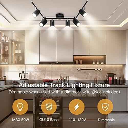 ?????Concise Design?: Constructed by high-quality metal, glossy matte black finish and six adjustable track heads, the ceiling track light is non-fading, corrosion-resistant and durable for many years. The unexposed socket design makes the ceiling spotlight kit more concise and elegant, and the beam more concentrated, creating a warm atmosphere with its industrial and stylish design.