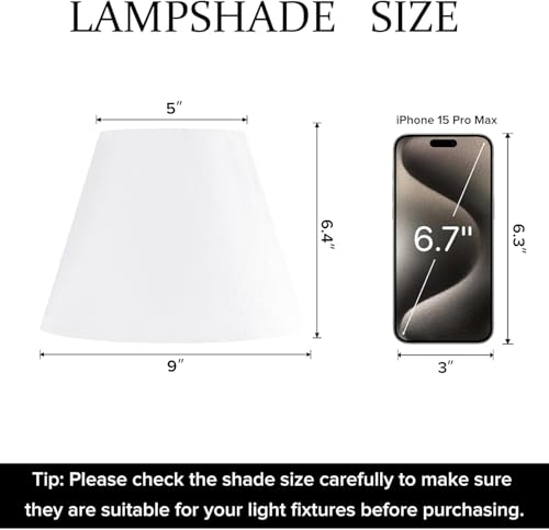 No Assembly Require?Small drum lampshade ,size:5 inch top diameter,9inch bottom diameter,6.4 inches tall,Suits most table lamps,Please check the lamp shades size carefully to make sure they are suitable for your light fixtures before purchasing.