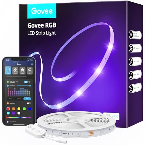 Convenience Voice Control: Govee LED Strip Lights can work with Alexa and Google Assistant, you only use the simple voice commands to control LED lights, such as turning on and off the led lights, adjusting the brightness, and changing the color.
