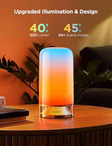 RGBICWW Technology & Upgraded Illumination: Enjoy multi-color displays, 500lm brightness (higher than previous models), and adjustable 2700k-6500k warm/cool whites. With Upgraded Illumination and Design, a pure visual feast whenever the smart table lamp is turned on.