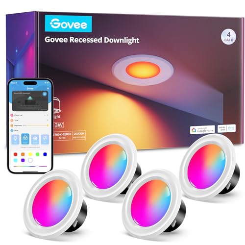 Govee Smart Retrofit Recessed Lighting 4 Inch, Wi-Fi Bluetooth Direct Connect RGBWW Retrofit Can Lights, 65 Scene Modes, Works with Alexa & Google Assistant, 800 Lumens, 4 Pack
