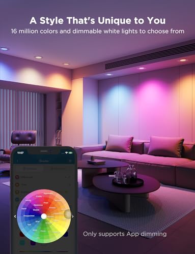 Millions of Color Options: Select from 16 million colors and 1-100% dimmable brightness to fill large spaces with 1000 lumens of bright light and improve safety on stairs and hallways. Includes tunable 2700k-6500k warm white to cool daylight options.