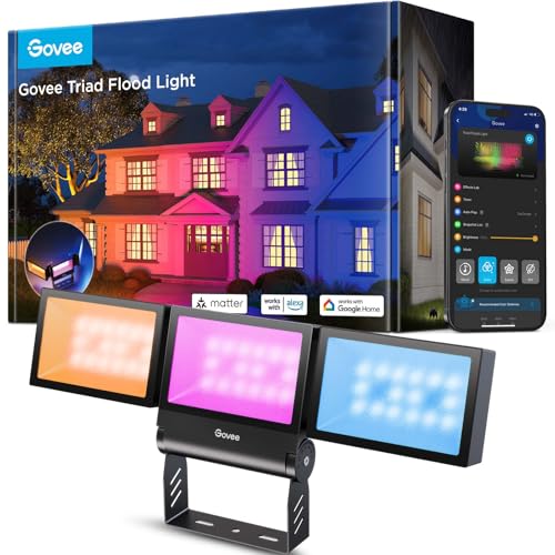 Stable and Durable Design: Features an IP66-rated lamp body, IP67-rated control box, IP44-rated adapter for robust protection against all weather conditions for outdoor Halloween decor. Govee triad flood light is made from high-quality aluminum alloy for optimal heat dissipation and durability, and is capable of withstanding external forces up to 4 times its own weight.