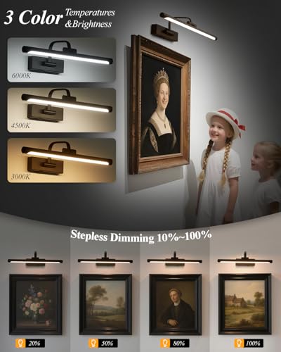 Long-Lasting Power: Rechargeable picture light operated with a built-in 5000mAh rechargeable battery and includes a Type-C charging wire. No hardwiring required.