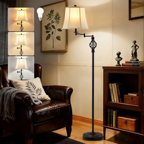 350°Adjustable Swing Arm Floor Lamp: Traditional floor lamp extending arm allows you to adjust how far out the light extends, which makes it perfect if you want to place it over a chair or bed, or behind the sofa
