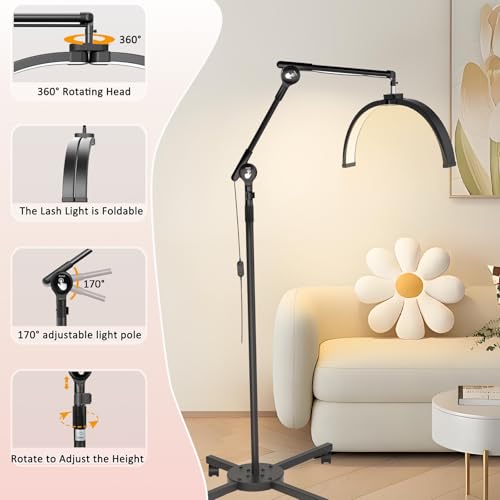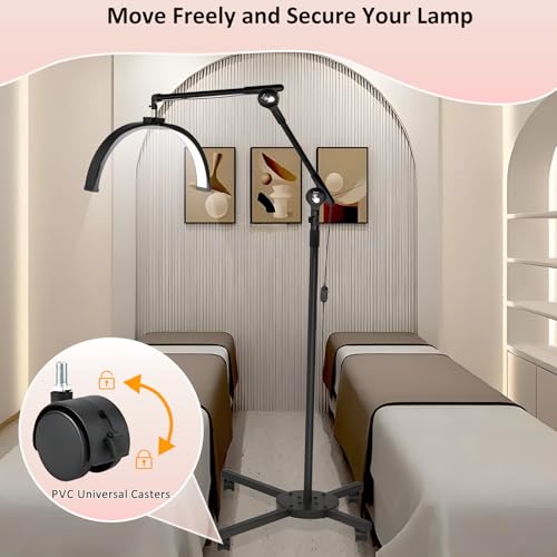 Convenient Roller Base design : The metal stand of the Lash Lamp has 360° rotating PVC casters that can smooth movement. The roller design allows the floor lamp to be easily moved to beauty and tattoo workstations, improving work efficiency. The easy installation design allows you to do it independently without any tools.