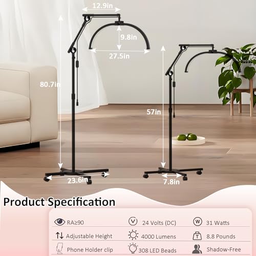 Professional Lighting Solution: This Lash Light Featuring an adjustable stand, swivel head and 308 LED beads, provides optimal eye-friendly lighting angles for ease and comfort during consultations or procedures. Beauticians, tattoo artists, nail artists will love this professional half moon light.