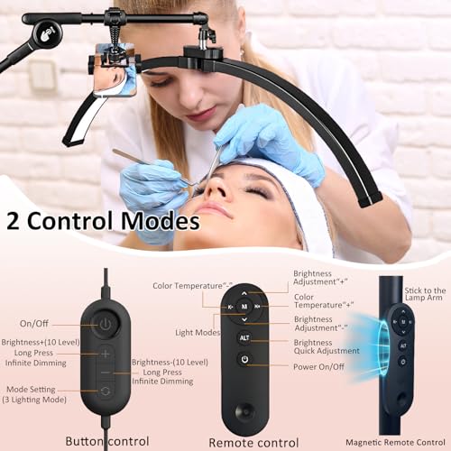 2 Control Modes: The floor lamp provides two control methods. You can easily control the lighting through the controller on the cord or the magnetic remote (batteries not included), enhancing convenience and ease of use. Our Half Moon Lamp for Lash Extension comes with a mobile phone holder, which can hold your mobile phone well for content creation or filming.