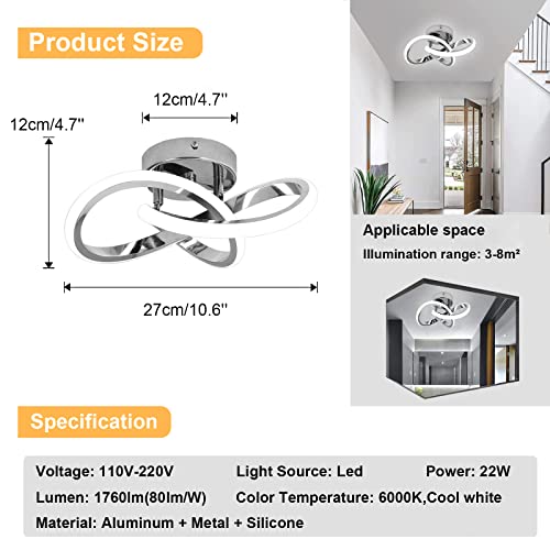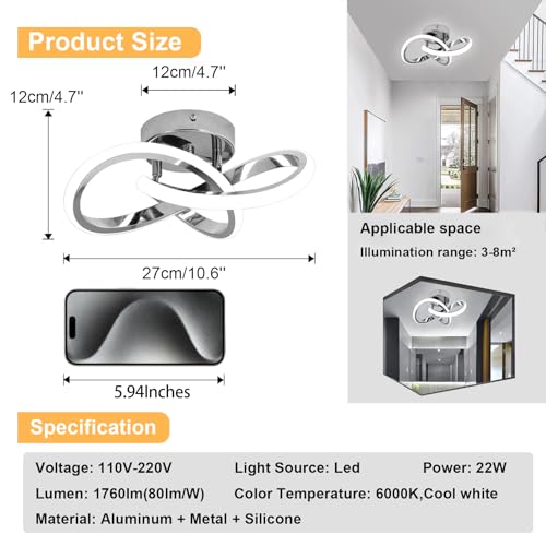 APECIFICATION - Size:L9.5*W9.5*H3.5inch(L24*W24*H9cm),Light color:Cool white(6000K),Body color:Chrome frame,Voltage: 110V,Watts:22W,Suit for3-8m²