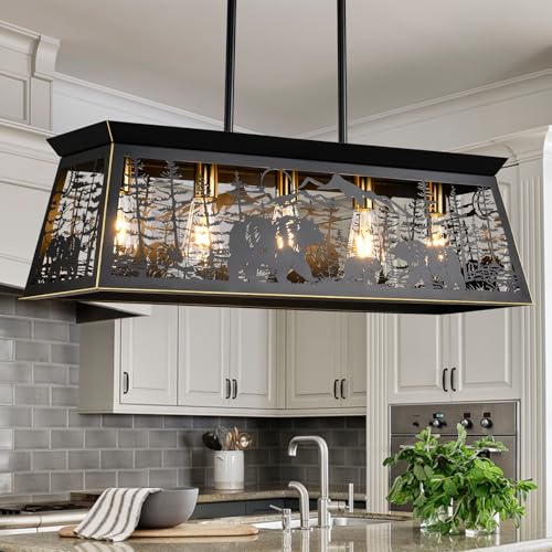 ? Rustic Style Design ? This farmhouse dining room light fixture is made of metal, with a matte black color and a gold border, which highlights three-dimensional beauty. There is both a retro and modern industrial style. Bears, trees, sun, moon, and clouds cut from metal add a natural touch to your home.