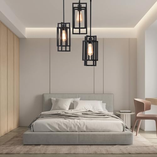 Adjustable Height: Black cage pendant lights comes with adjustable 5 rob, and allow the kitchen pendant lighting the hight from min 24" to max 71.8". The pendant lights is ideal for a variety of spaces, from farmhouse island pendant lighting for kitchens to square pendant light.