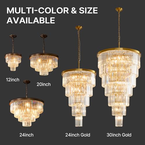 Large Crystal Chandelier - Diameter 24", Height 35.6", with extra 59" length metal chains. A Ideal modern chandelier for entryway, 2 story foyer, living room, office, entrance, stairs, hallway, villa