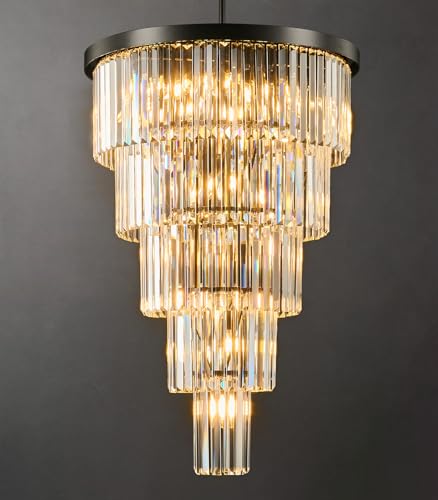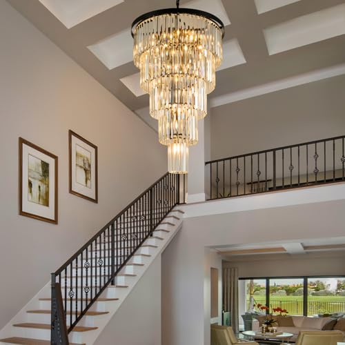 [Easy to install and clean Lights Fixtures] All the wires of entryway chandeliers for high ceilings are pre-wired and pre-threaded. You just need to install the canopy to the sloped(<30°) or flat ceiling, hanging crystals into metal tops and adjust the staircase chandelier into the shape you like. Detailed installation guides and support are always offered