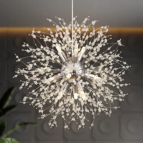 ??Unique Design?: This crystal dandelion chandeliers is designed with firework shape, so elegant and gorgeous. Glitter crystal flash with a bright light gives a romantic and luxurious enjoyment for your home.