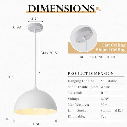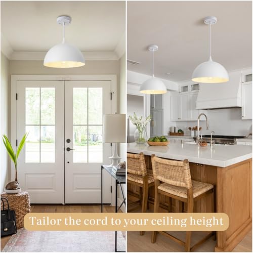 ?Retro?The farmhouse pendant lights feature a metal dome shade with a bright white interior, can bring a nostalgic touch to your kitchen. Pendant lights can enhance both the design of barn, hallway, entryway, bedroom, dining room, living room, balcony, office, bar.