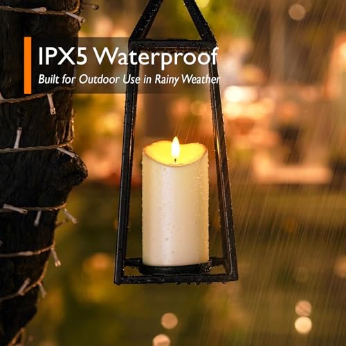 Stable Reliable Outdoor Waterproof Candles: Homemory flickering flameless candles combine a 3D wick (not moving flame) with a waterproof feature to make these outdoor candles more realistic without worrying about melting or rain, hot or cold weather. They are great indoors or outdoors.