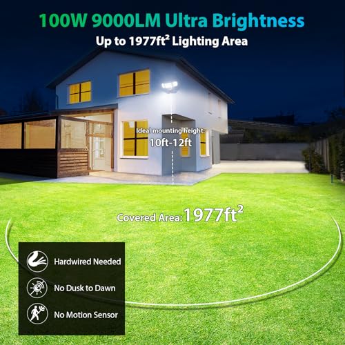 Easy Installation and Switch Controlled:This hard wired outdoor security light can be quickly installed with simple wiring and screwing steps, by mounting to a junction box on a wall or under the eaves/soffits. And then connect a wall switch to turn on/off the light (Note: No motion sensor)