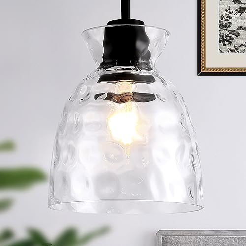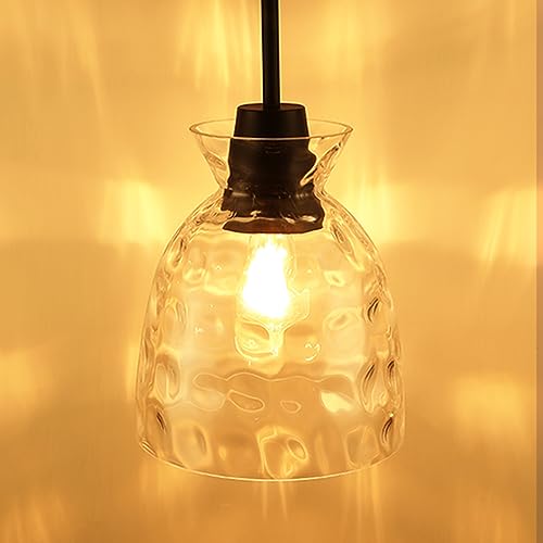 MODERN DESIGN: This industrial pendant light is made up of hammered glass allowing for moderate brightness to protect your eyes. Create a modern atmosphere in your room. Ideal for kitchen island, dining room, bedroom, hallway, restaurant, living room, bar, over the kitchen sink, etc.