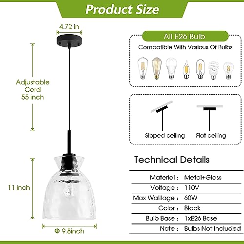 EASY TO INSTALL: This hammered glass pendant light has glass shade size(9.8''D x11''D), canopy(4.72"). Our pendant lights include a user manual for quick and easy installation.