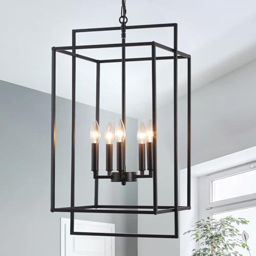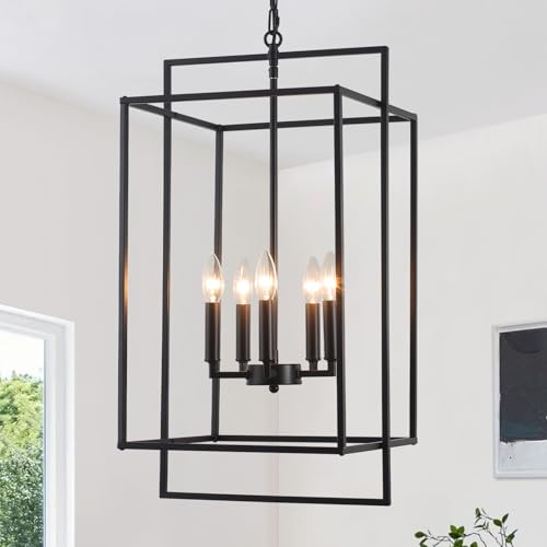 ?Staircase Chandelier?The black farmhouse style chandelier consists of a black metal frame and minimalist silhouette, giving it a modern yet rustic look that instantly adds a vintage feel. The light from each lamp is soft and warm enough to illuminate an entire area without being harsh, perfect for creating a cozy and elegant home atmosphere.