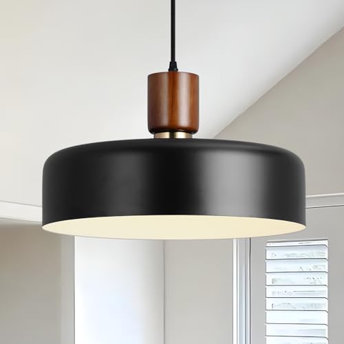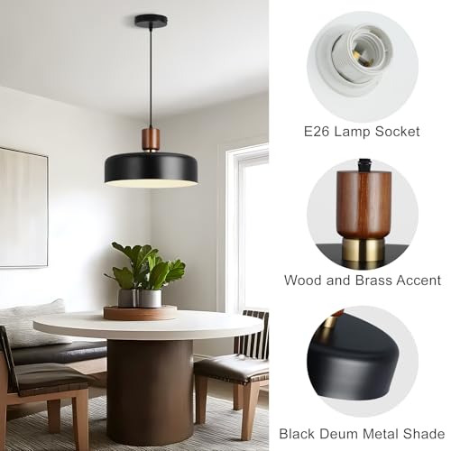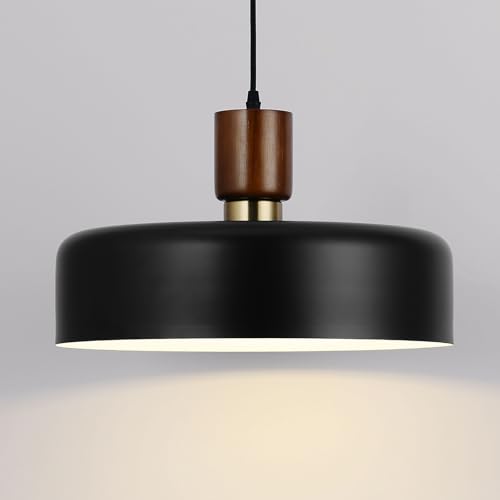 ?INDUSTRIAL STYLE DESIGN - This single chandelier has ubber wood column top and matte black hammered metal shade, connected by a gold brass piece,makes your room full of artistic sense. Not only a pendant lamp but also a good-looking decoration. Never out of date and easily fits any style.