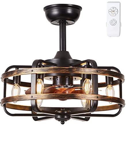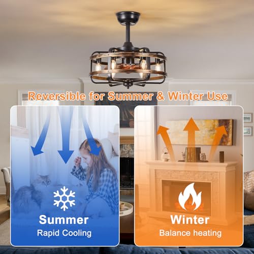Reversible Ceiling Fan Vintage Design?Upgrade 18" Iron caged shape of industrial style farmhouse ceiling fan with ligths, more solid and longer service life, black ceiling fan stored 8 ABS fan blades keep all night quiet work (within 35dB )