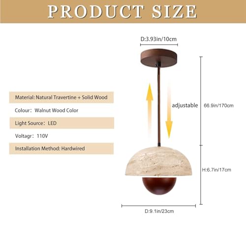 Attention: The pendant lamp could not be plugged in. It must be installed. Pendant Light Dimensions: Shade 9.1'' W x 6.7'' H, Wood & stone pendant light includes adjustable cord height up to 78.7''. (Due to the handmade process, slight size variations (1-2cm) are normal and reflect the authentic charm of real stone).