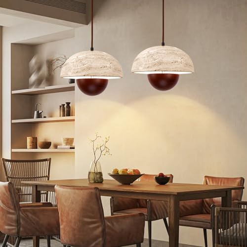 Natural stone Pendant Lights: The gorgeous travertine pendant lights is handmade with natural stone, fresh design is an elegant update for homes, is a perfect hanging lamp for any space. The unique irregular pores and textures on the stone are natural characteristics, not defects. This is reasonable situation.