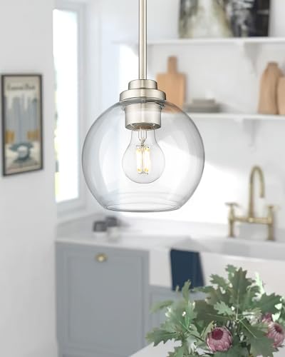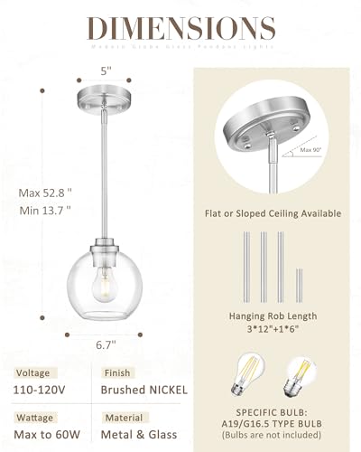 Modern Mid Century Globe Lights: The hanging light fixtures ceiling is brushed nickel finish featured with clear globe glass shade to meet your needs dining room, kitchen island, bedroom, bathroom etc.