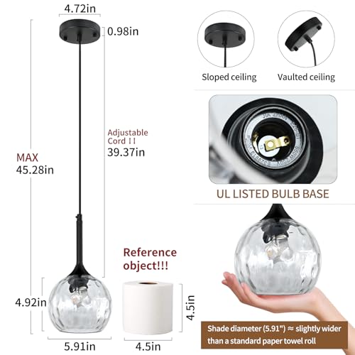 Easy to Install: The glass chandelier with hammered glass shade measures 4.92''x5.91'', which is a perfect size for a variety of spaces. 1-Light Pendant Light Fixture comes with all necessary hardware and instructions for quick and easy installation.