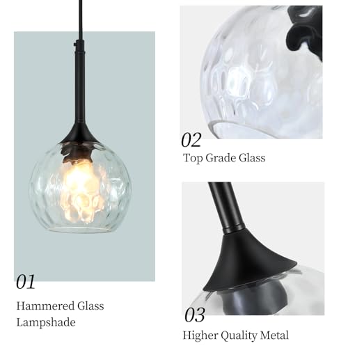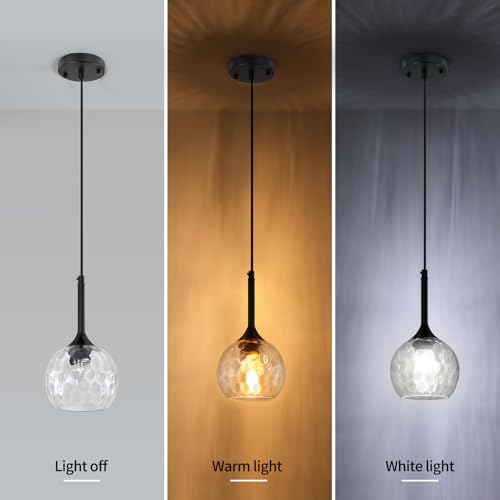 Elegant Hammered Glass Design: Elevate your space with this modern pendant light, featuring a hand-blown craftsmanship clear hammered glass shade that creates a soft, diffused glow. The sleek metal frame complements the glass, offering a minimalist yet elegant look, seamlessly blends with modern and contemporary decor.