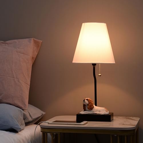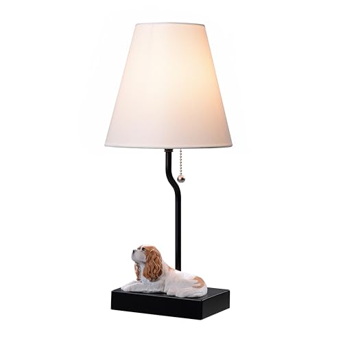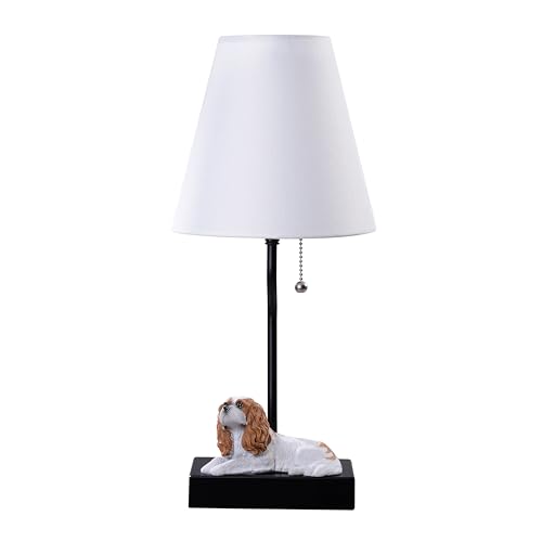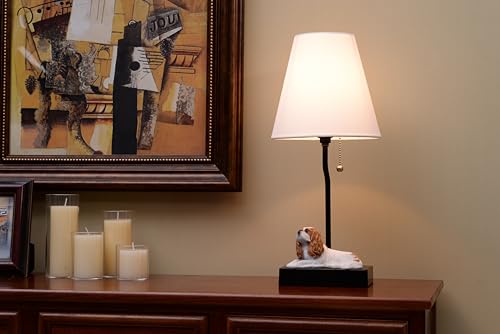 ?Design: Minimalist Charm? This lamp features a delightful minimalist design with a resin puppy figurine as its base. The adorable Cavalier King Charles Spaniel sculpture adds whimsy and warmth to the sleek, modern lamp. A simple black stand and classic white shade complement the puppy figure, creating a harmonious blend of playful and sophisticated elements.