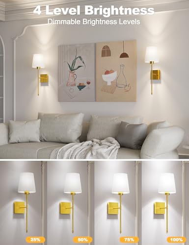 ?Stylish Battery wall sconce?JOFIOS wireless wall sconces combines a sleek gold metal design with a soft, elegant white shade to create a classic and sophisticated look that will add a touch of luxury to any room. The wireless charging design is not limited by cords and sockets. Equipped with a rechargeable 5200 mAh high-capacity bulb, say goodbye to frequent charging and use with more peace of mind