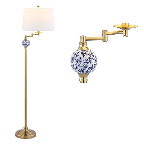 Classic blue and white porcelain accents and a brass-gold finish give this swing arm lamp an elegant look